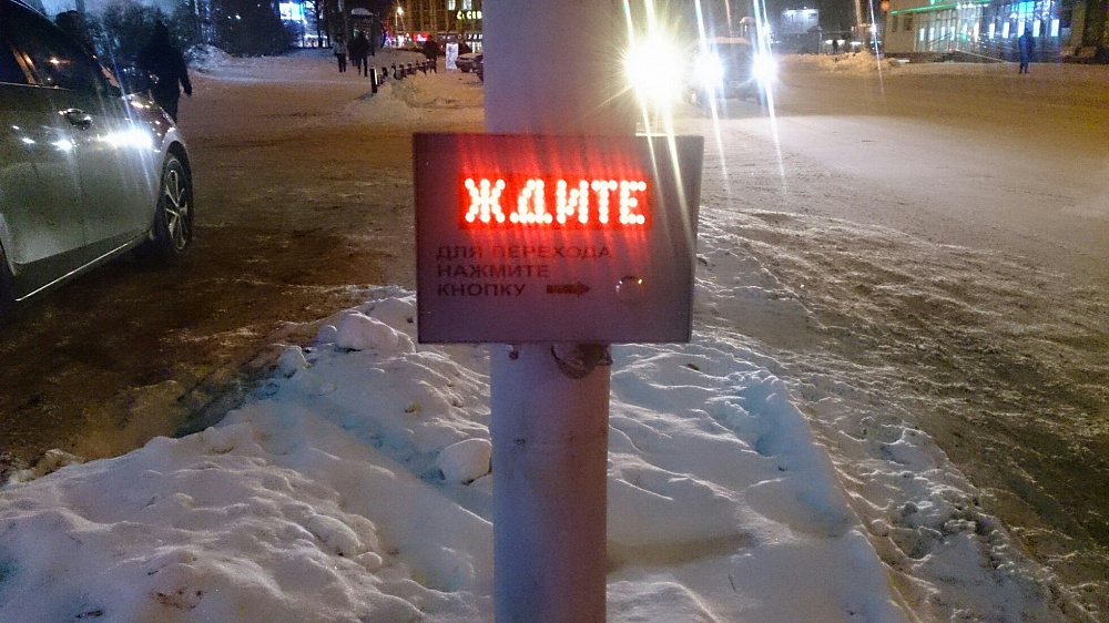 В Ухте на центральной улице города появился "кнопочный" светофор, не смотря на то, что его установили более месяца назад - не все горожане сразу поняли принцип его работы- для включения сигнала который разрешит пешеходу перейти проезжую часть, необходимо нажать на кнопку, после чего через 20 секунд для автомобилистов загорается красный ... Многие пенсионеры стоят и ждут,не понимая этого принципа. Может стоит сделать дополнительный указатель со шрифтом покрупнее?