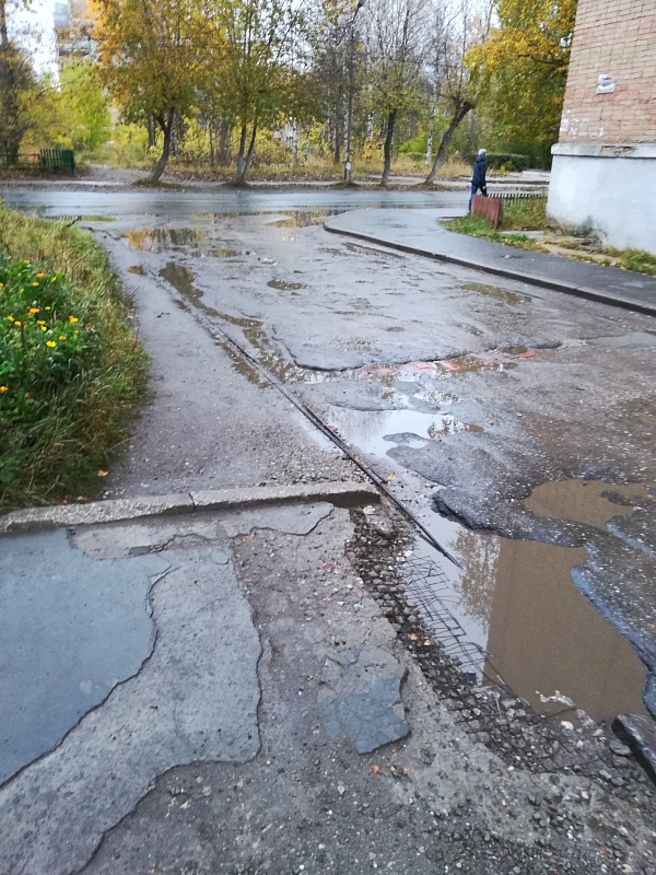Разбитая дорога во вдоре домов по Гоголя, 2, Дзержинского 11, Дзержинского 11а